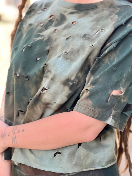 Dyed Forest 100% Cotton Distressed Punk Crop (Large)