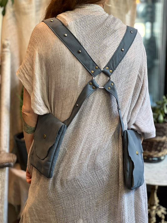 Gray Hair on Hide Triple Pocket Crossbody Bag
