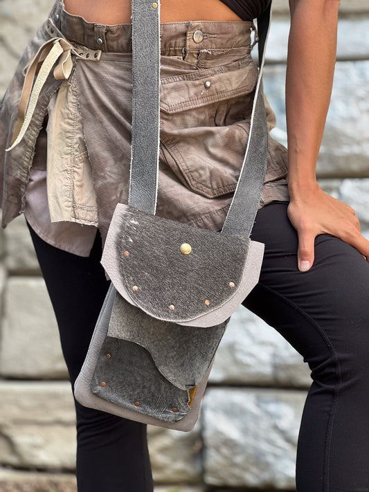 Gray Hair on Hide Triple Pocket Crossbody Bag