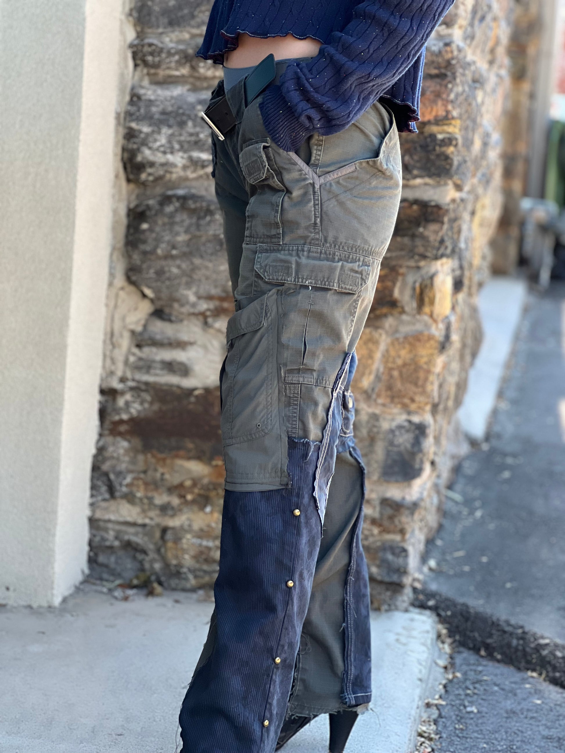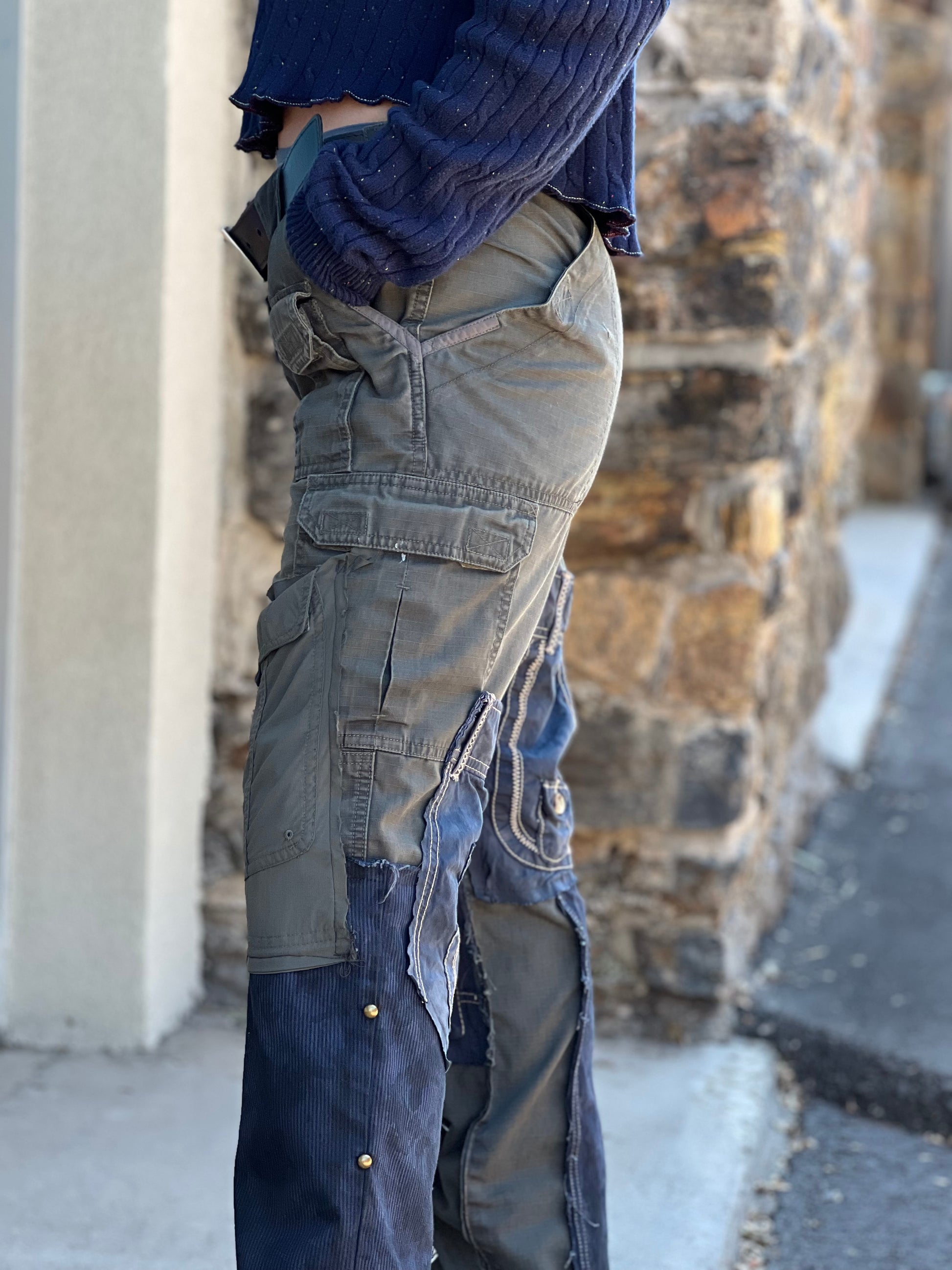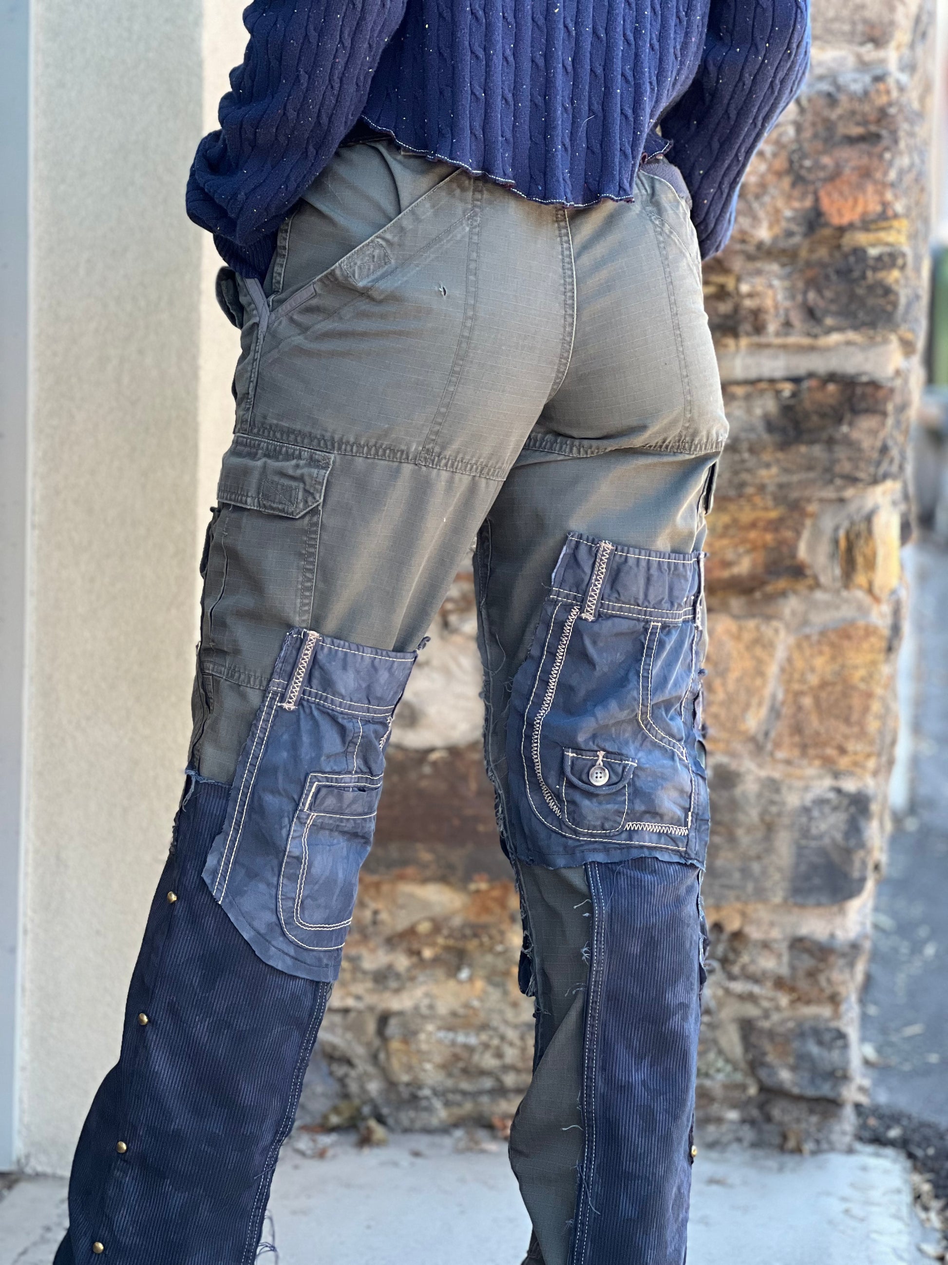 Unleash your inner apocalyptic survivor with these handcrafted and hand-dyed cargo pants. Featuring additional upcycled cargo pockets, these cargo pants exude a road warrior energy for the strong and wild spirit.