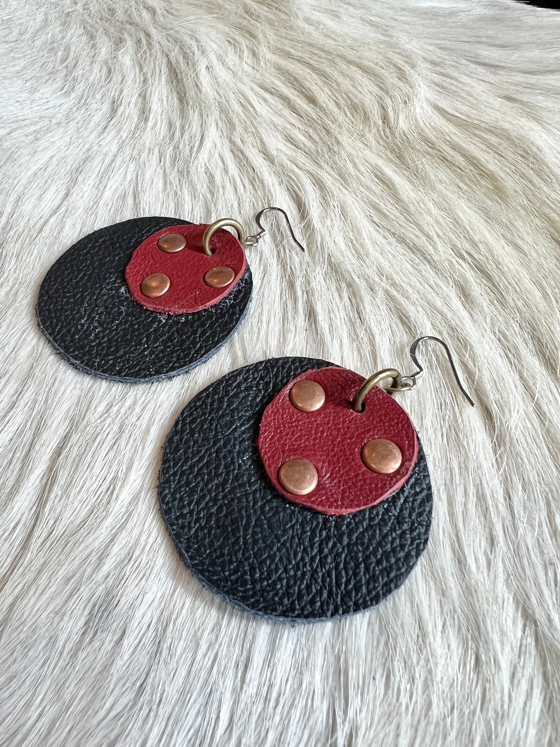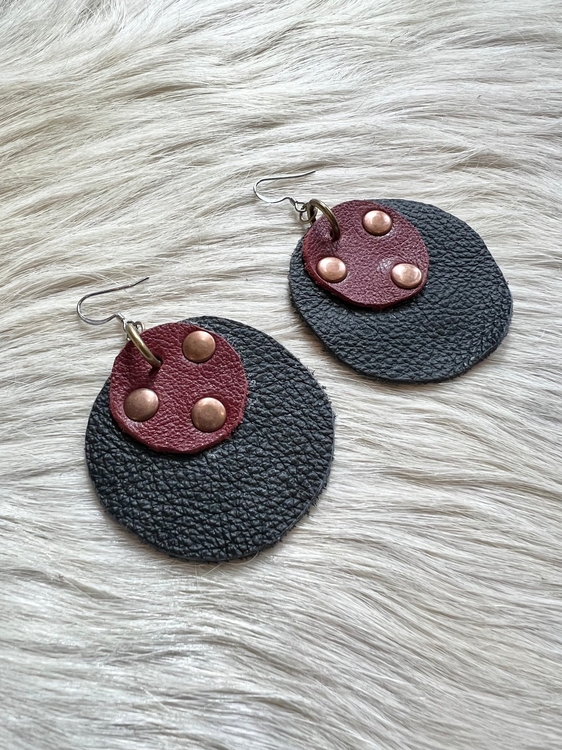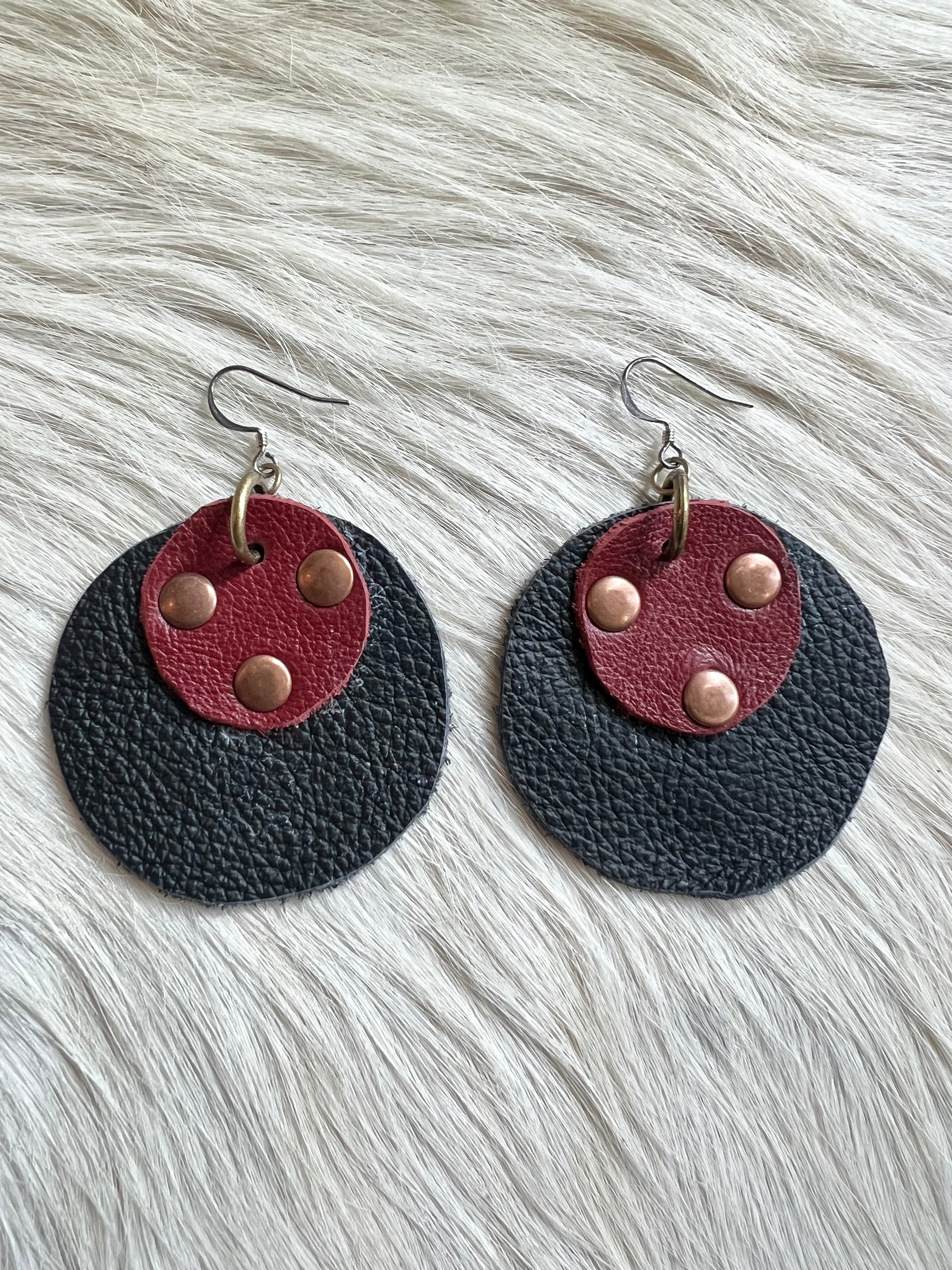 The perfect mix of "ancient & Future" these handcrafted leather earrings are an easy choice to adorn and style just about any outfit. Their simplicity makes pairing a breeze and their unique, yet simplistic circle shape give an eccentric style.