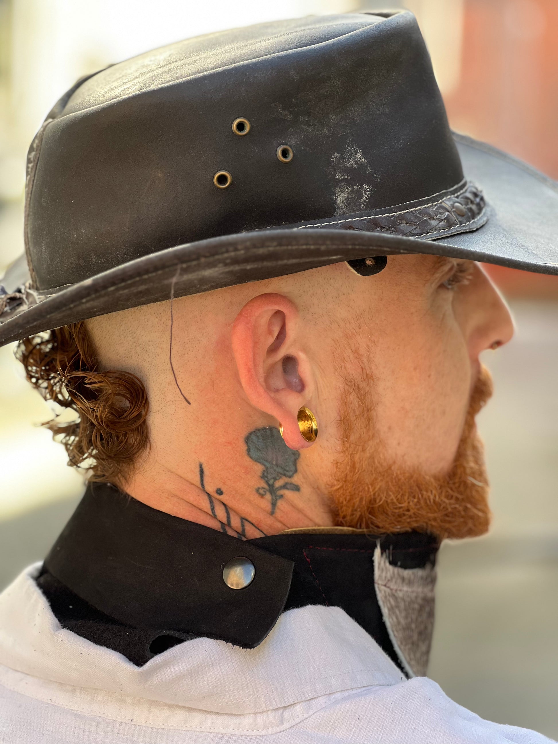 Crafted from post-manufactured scrap leather, this Fur Hide & Leather Neck Scarf blends sustainability with a timeless western aesthetic. Designed for unisex wear, it offers a classic look enhanced by an industrial snap closure for secure and adjustable fit. Its durable construction and unique material provide both style and eco-conscious appeal.