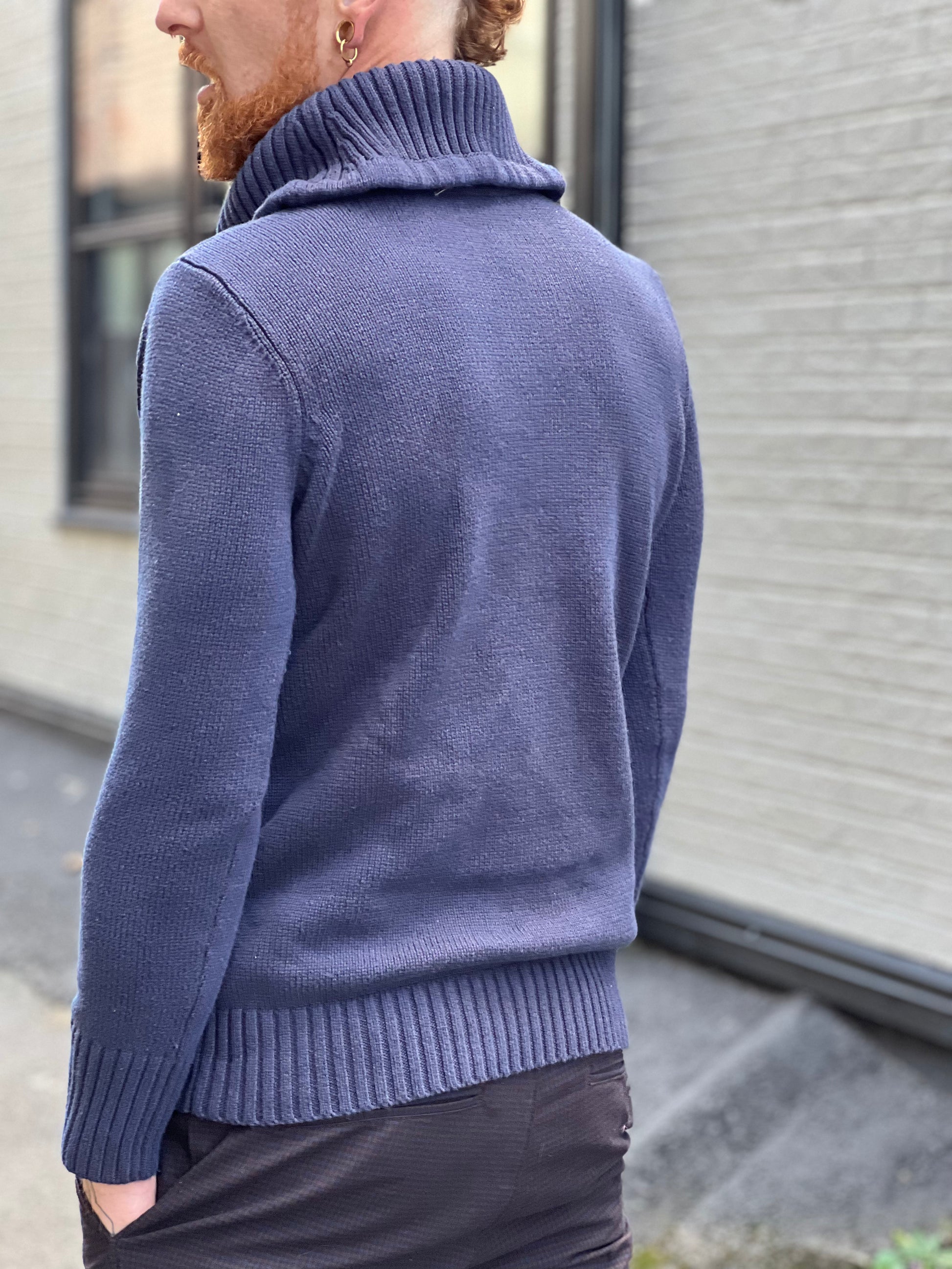 This Indigo Pegasus Cowl Sweater is thoughtfully upcycled and repurposed, combining sustainability with style. Crafted in a classic fit, it features a distinctive cowl neck that adds both comfort and a refined silhouette. The elegant pegasus print design makes it a unique statement piece that elevates any wardrobe while supporting eco-conscious fashion.