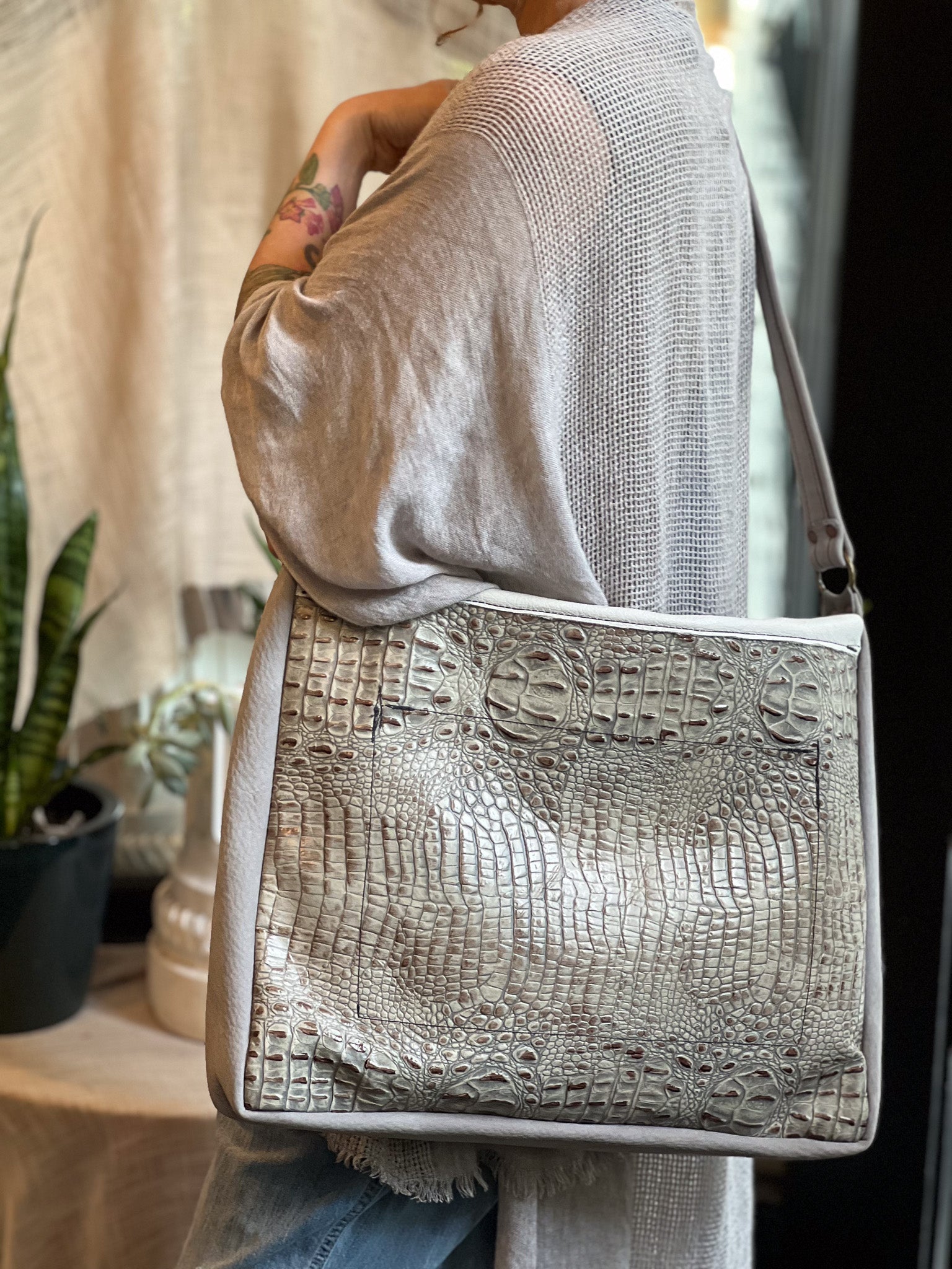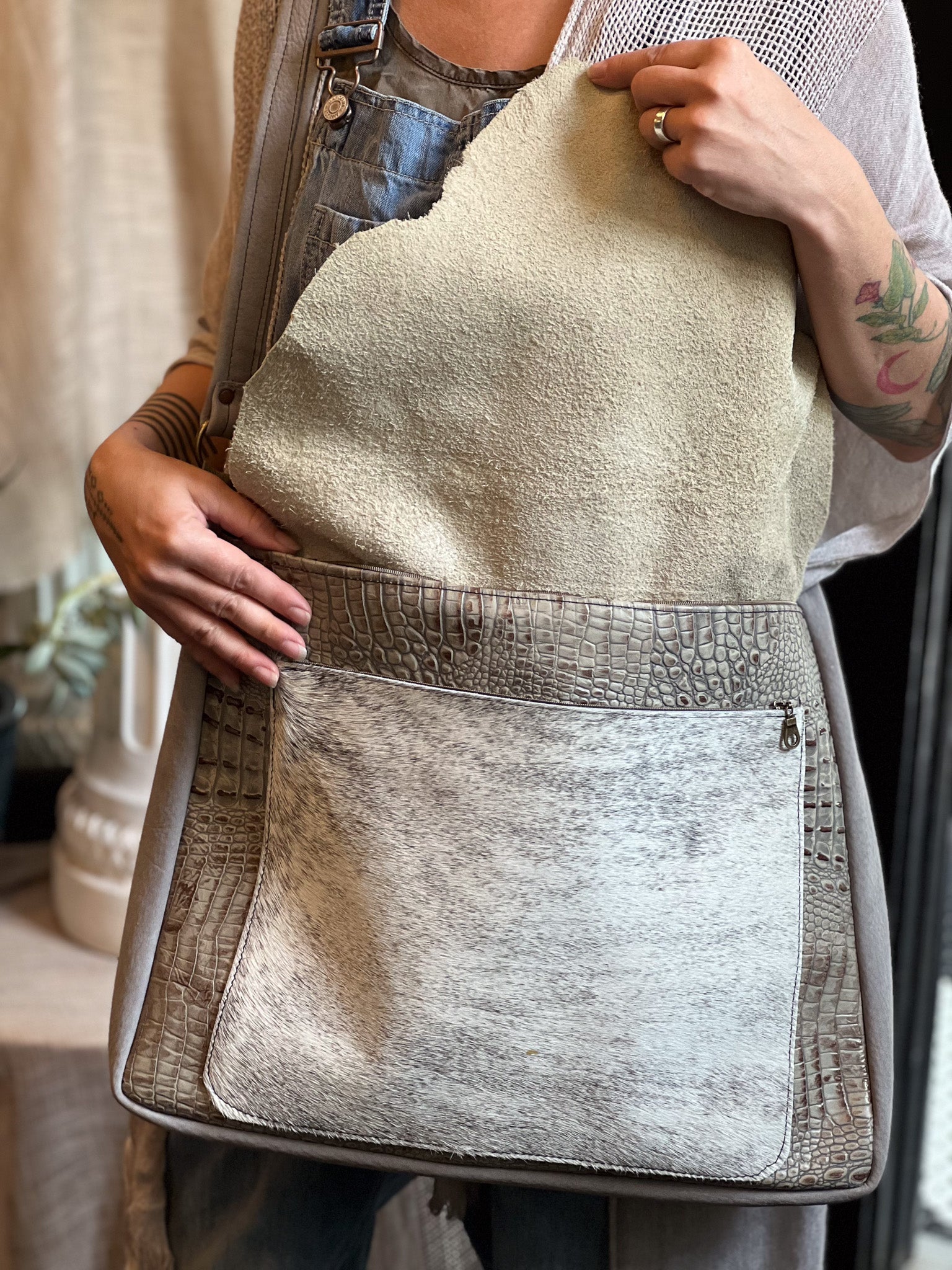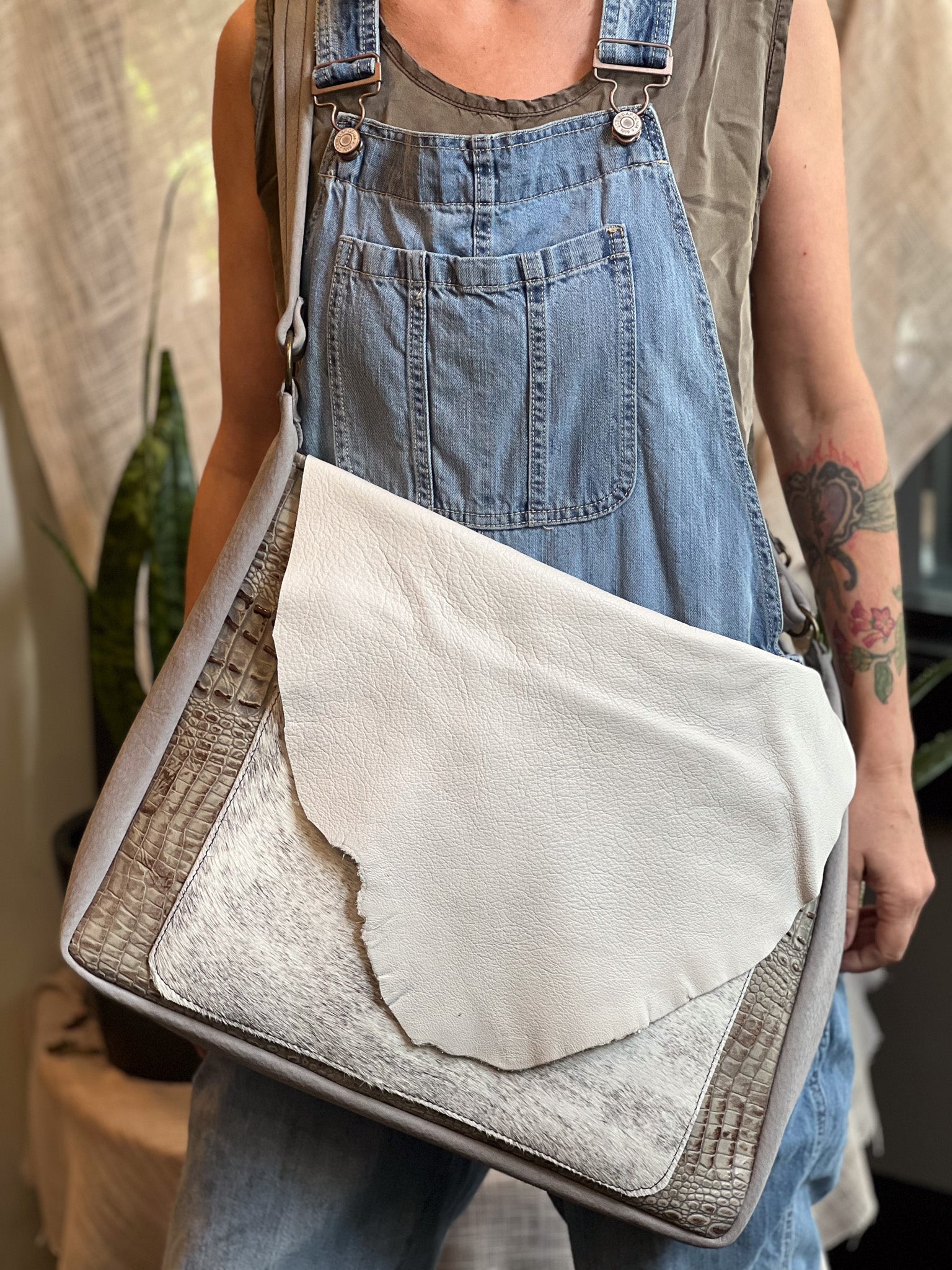 Constructed from all high-end, post-manufactured scrap leather, this beautiful and roomy, leather messenger bag provides ample space for your laptop and notebooks for heading out to your favorite coffee shop for a cozy workday, or room for a change of clothes for after a good afternoon of exercising at the gym.