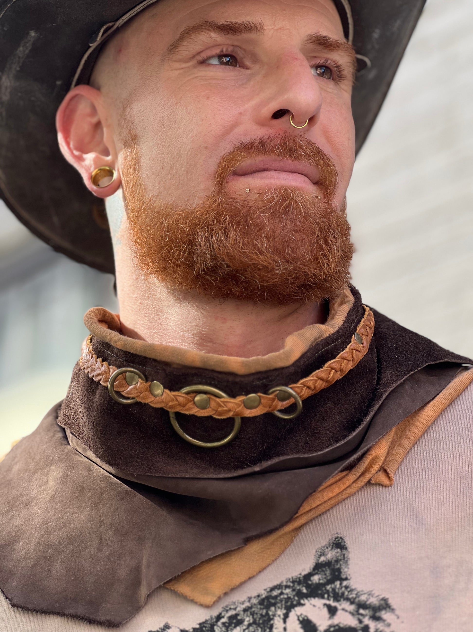 This Leather & Bamboo Fleece Neck Scarf combines sustainable craftsmanship with functional design. Handcrafted from post-manufactured scrap leather in a rich dark brown tone, it features durable industrial snaps and a sienna braided leather accent for added texture. The bamboo fleece underlayer offers soft, breathable warmth, making this scarf an eco-conscious choice for year-round comfort and style.