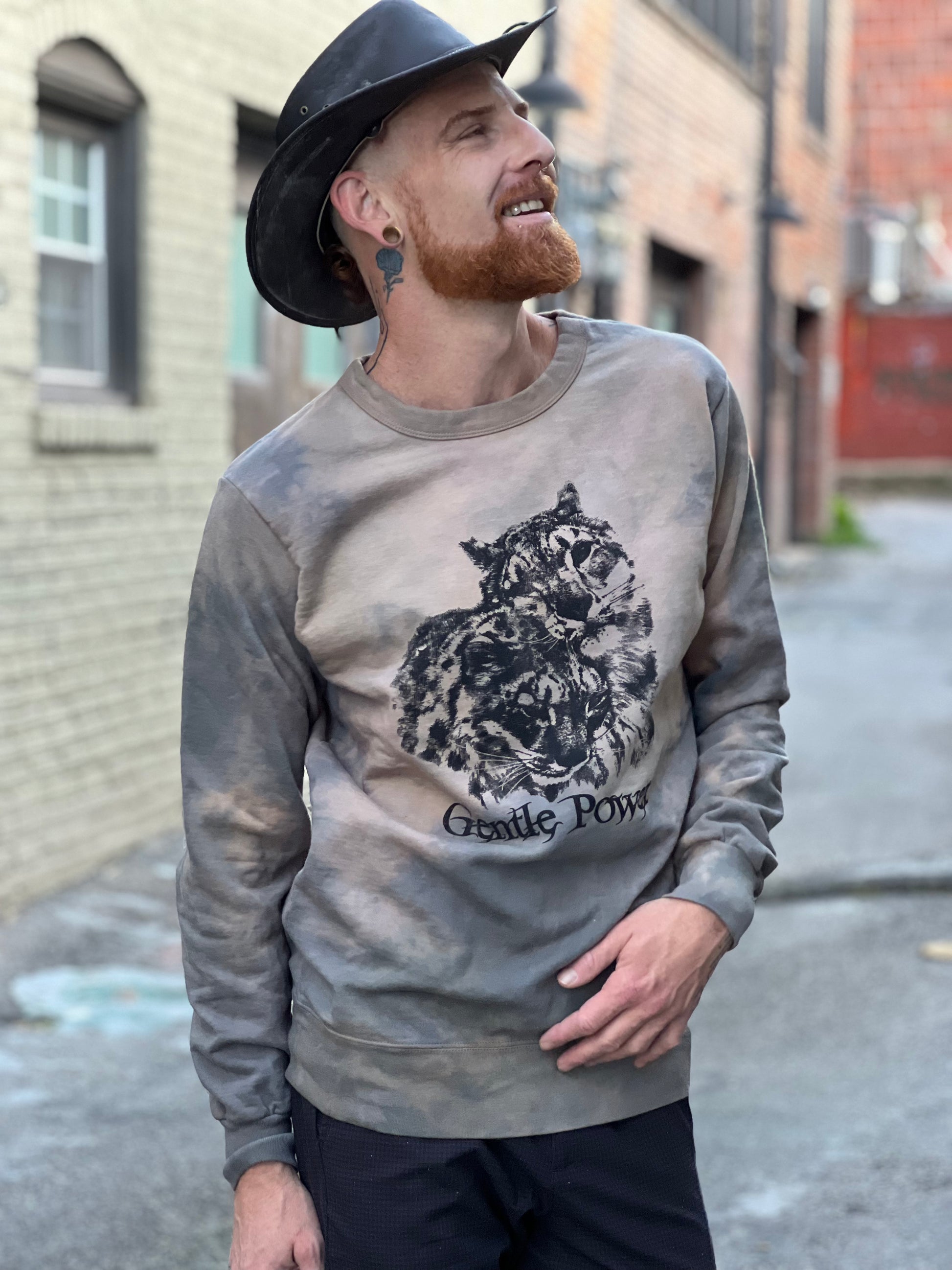 Experience unmatched comfort and sustainability with the Marble Dyed Gentle Power Sweatshirt by Liberty Organics. Crafted from 100% organic cotton and hand-dyed using low-impact dyes, this sweatshirt offers a soft, warm feel while minimizing environmental impact. Featuring the striking Snow Leopard design, it symbolizes strength and subtle elegance, making it a perfect blend of style and conscious craftsmanship. Ideal for those who value eco-friendly fashion without compromising on comfort or quality.\