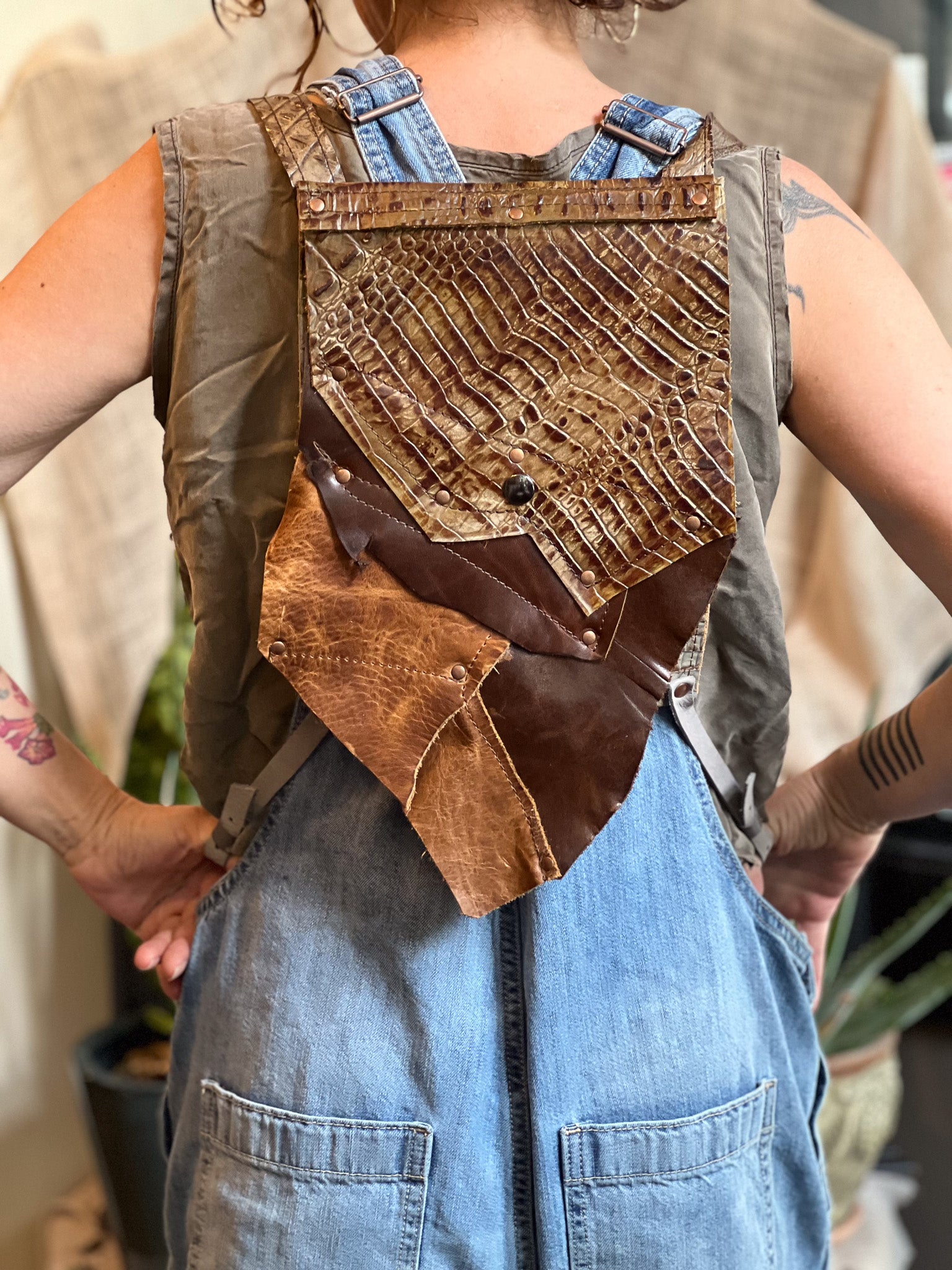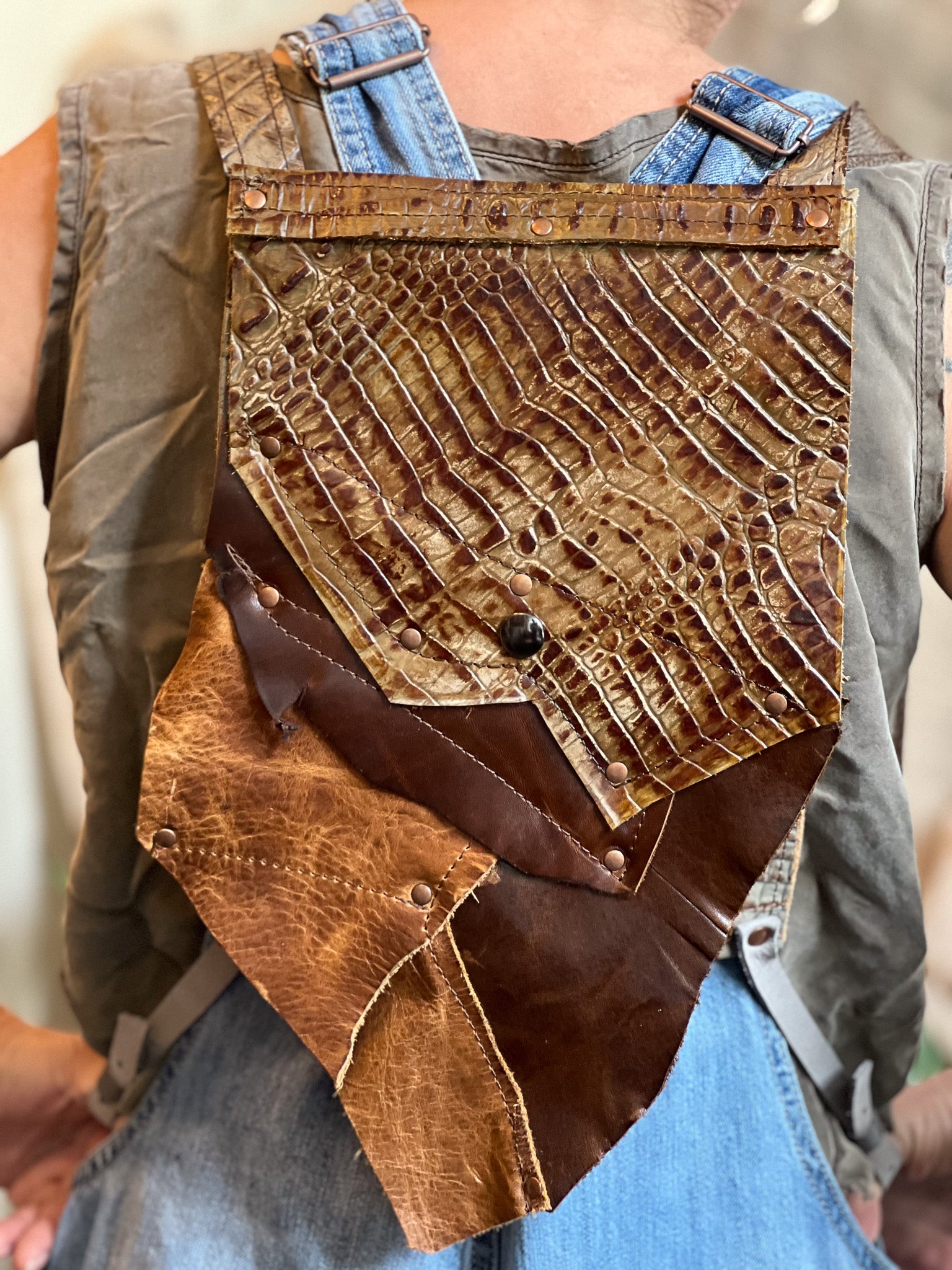 Super simple and affordable! This mini leather backpack is crafted by our little RP studio team from post-manufacture scraps. Our Rustic Scrap Backpack features a unique multi-exotic scrap leather and various other leather finishes in a patchwork design. With sustainability and style in mind, this backpack is perfect for the conscious and fashion-forward consumer.