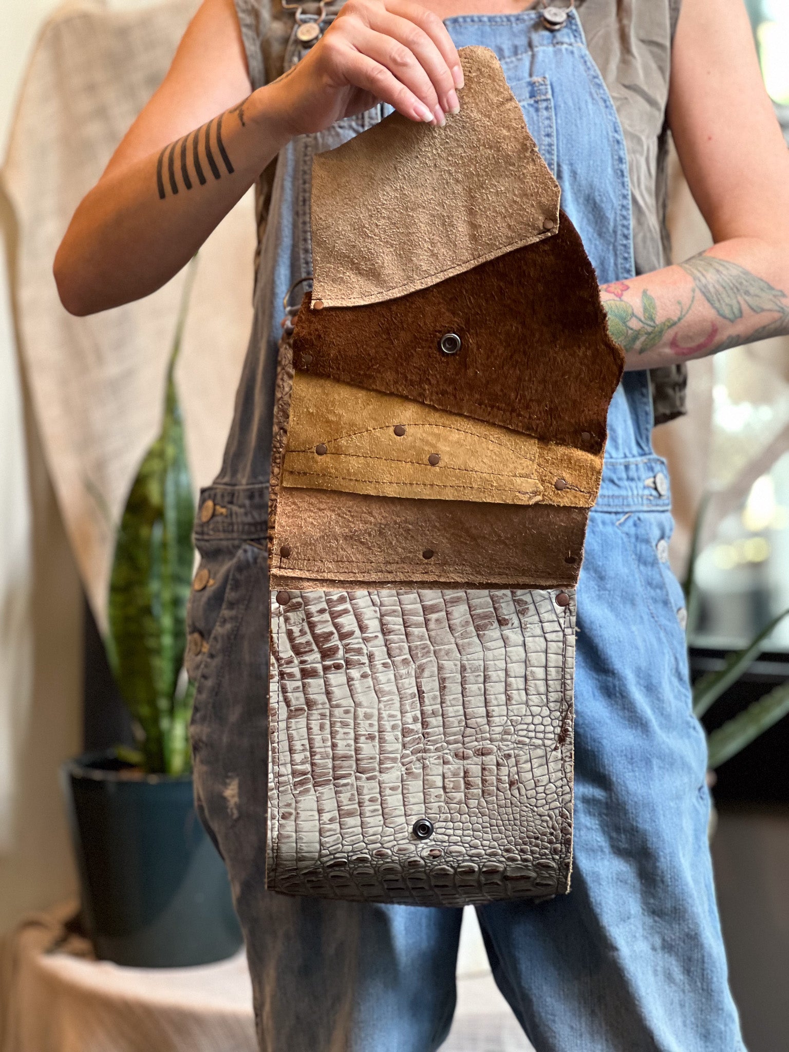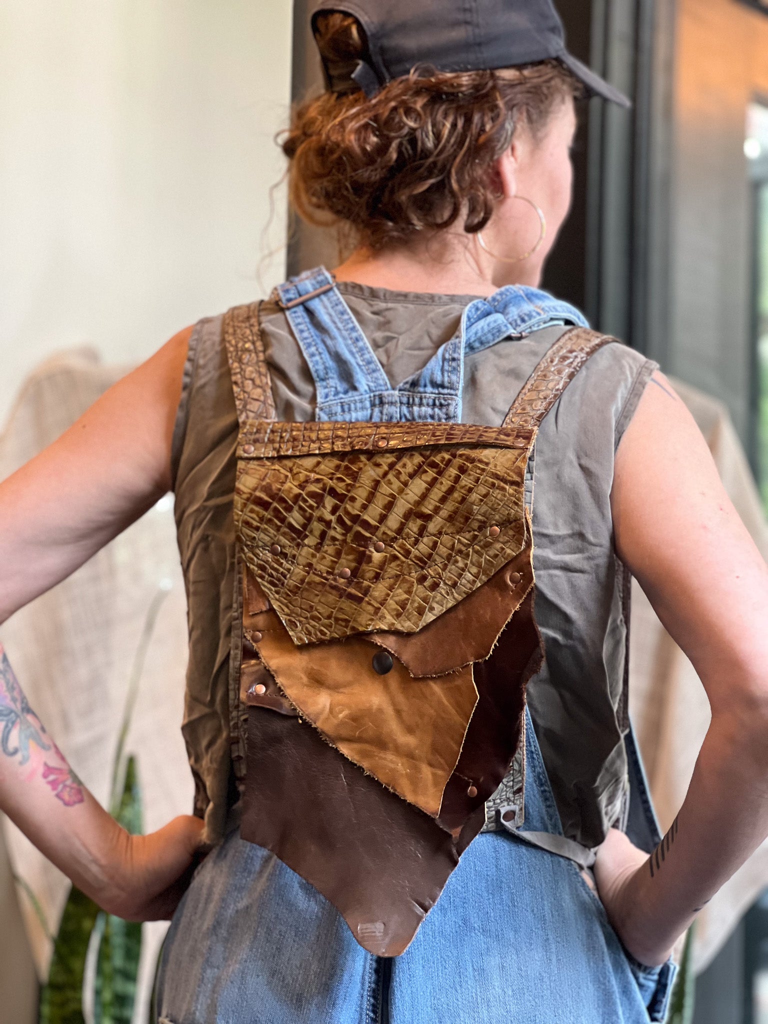 Super simple and affordable! This mini leather backpack is crafted by our little RP studio team from post-manufacture scraps. Our Rustic Scrap Backpack features a unique multi-exotic scrap leather and various other leather finishes in a patchwork design. With sustainability and style in mind, this backpack is perfect for the conscious and fashion-forward consumer.