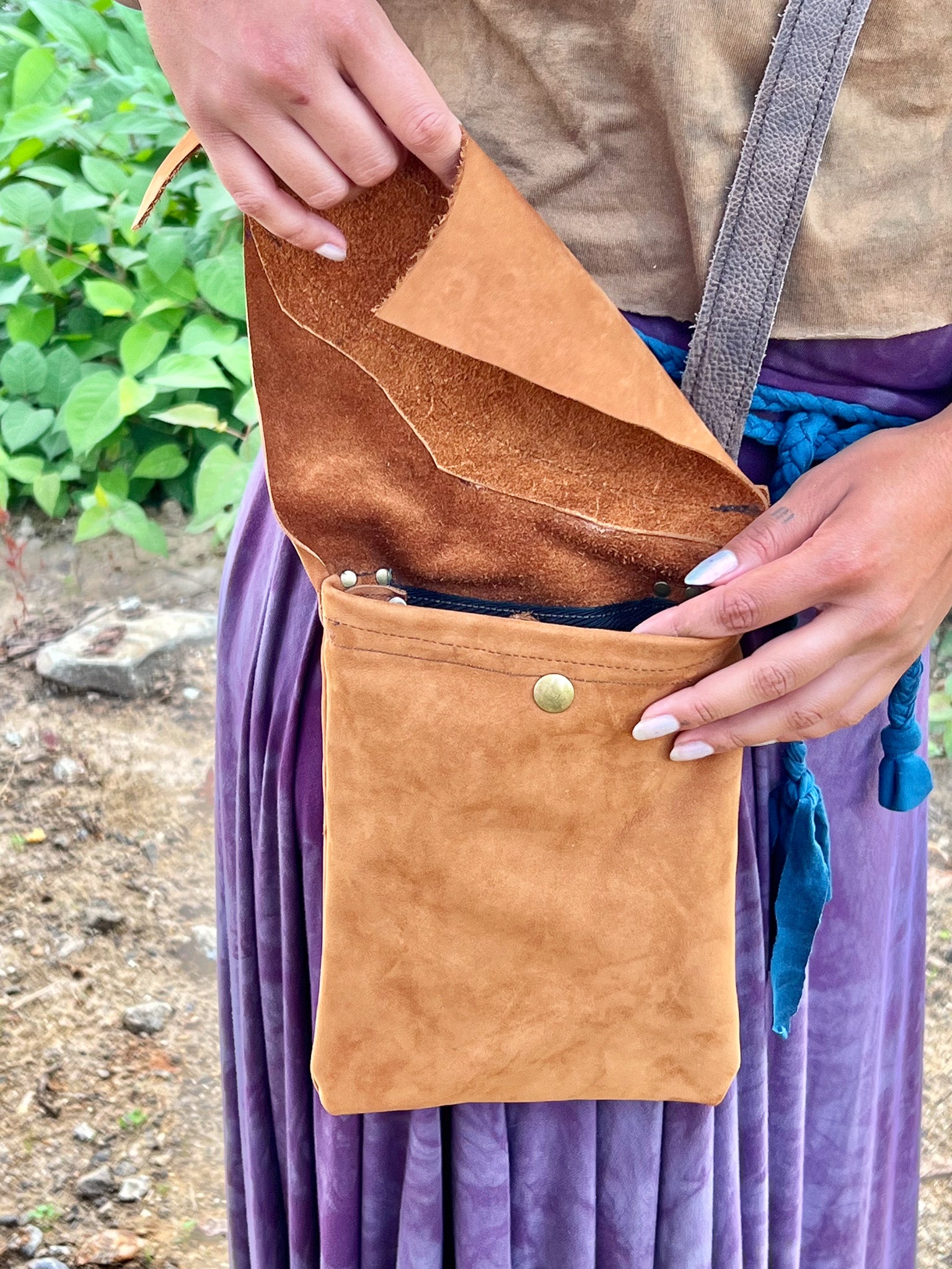 Crafted from post-manufactured scrap leather, the Sienna Nubuck Leather Crossbody Mini Bag showcases expert craftsmanship and sustainability. Its exceptionally soft nubuck leather offers a luxurious feel, while a fabric liner protects your essentials. Designed in a convenient crossbody style, it features multiple storage compartments that keep your belongings organized and accessible, combining style with practical functionality.