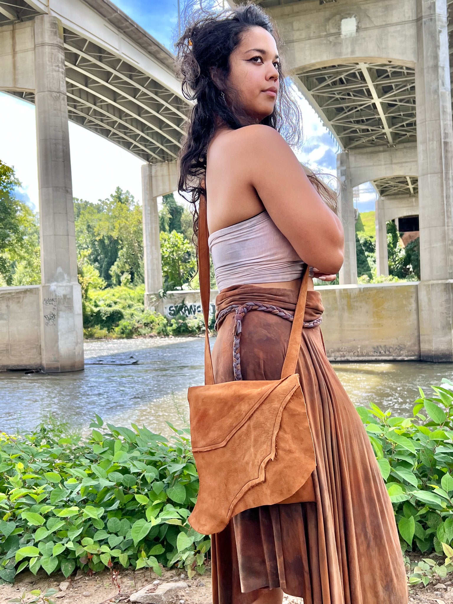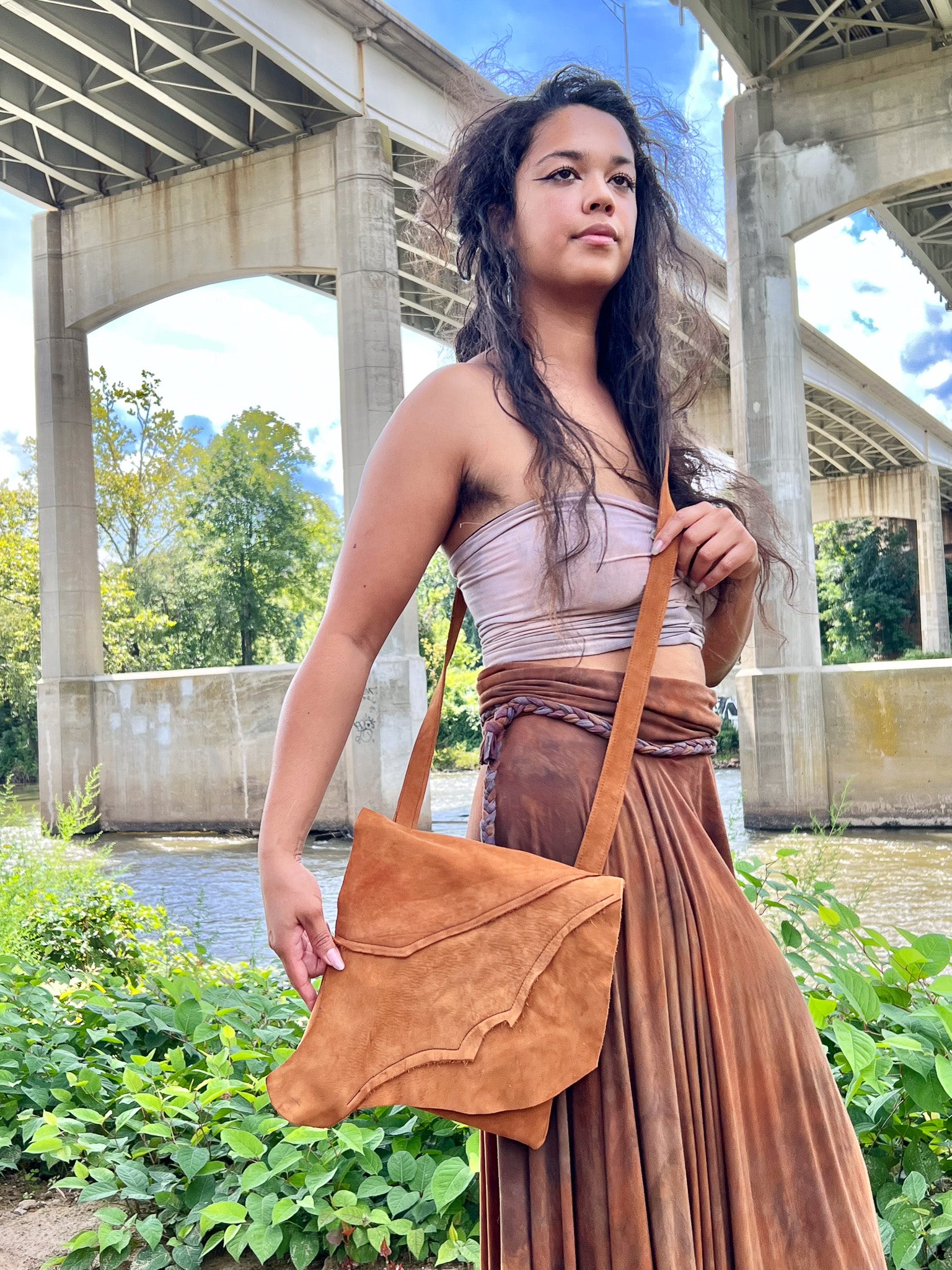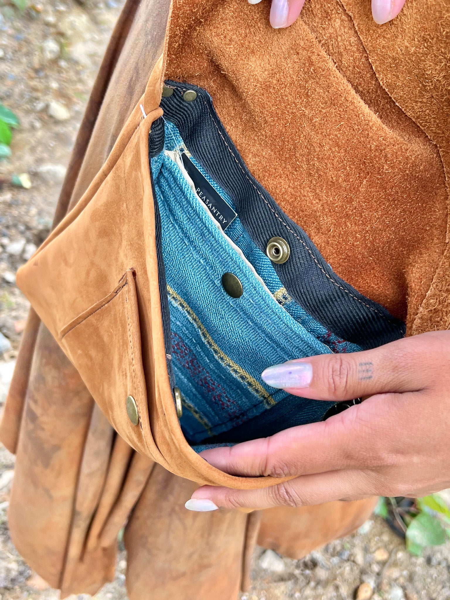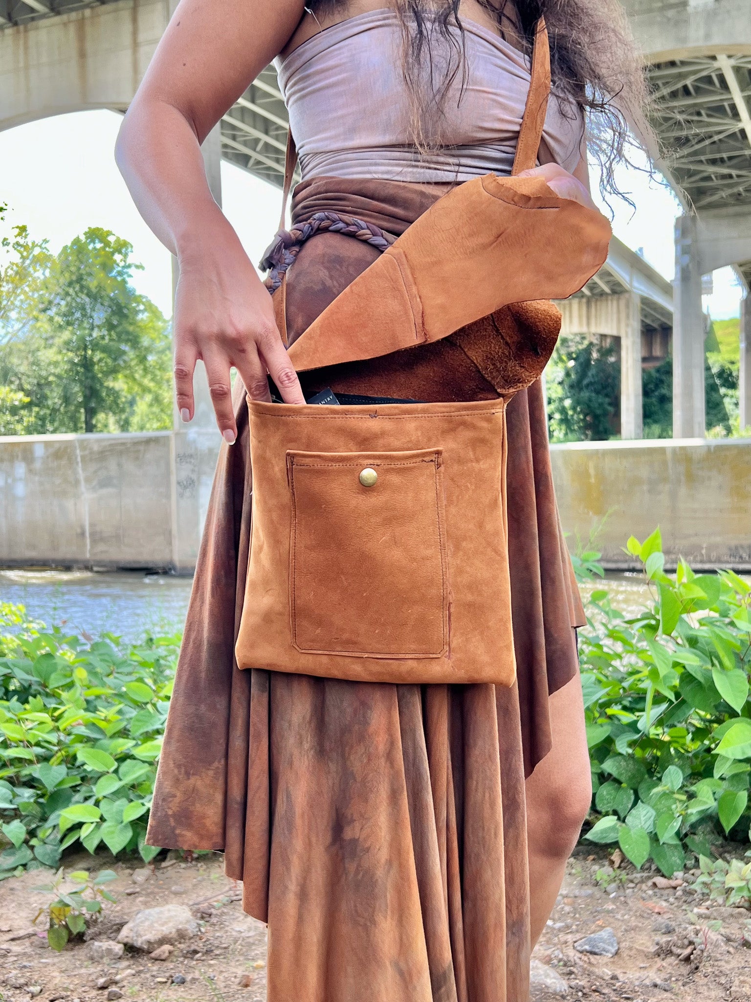 Crafted from soft nubuck leather in a rich sienna hue, this crossbody bag combines elegance with functionality. Its thoughtfully designed multi-pocket layout offers organized storage, while the durable fabric liner ensures prolonged use. Industrial brass snaps provide secure closure and add a refined, sturdy finish. Perfect for those seeking a sophisticated, versatile accessory that balances style and practical convenience.